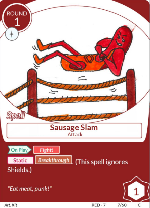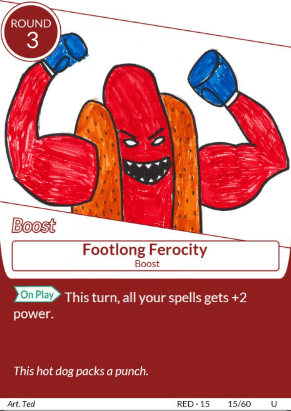 The red deck we designed is the most straight forward aggro deck in our game. The cards in the red archetype are very straightforward to achieving the objective of the game – knocking out the opposing fighter with its power and fight spells. Since the game is about betting on which fighter is going to win, the red archetype fights and creates the opportunity itself.
