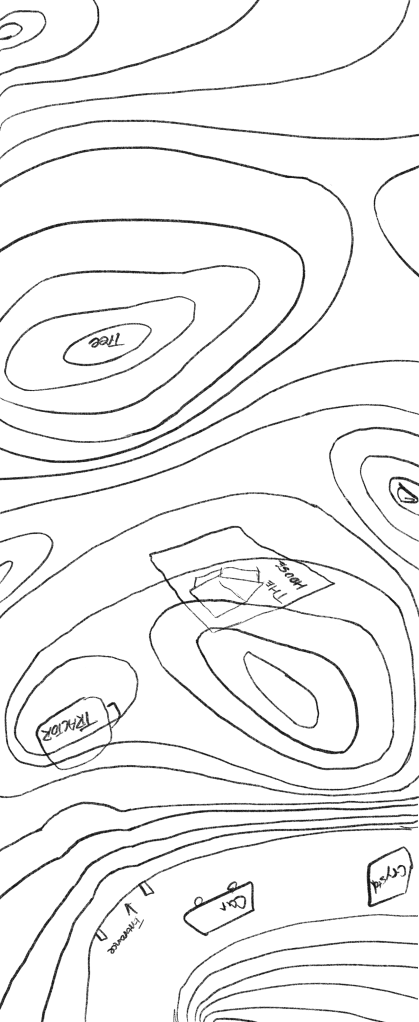 Deciding on the story about a girl’s journey going home while her car crashed on the road, we sketched out the top down map of the world map. Since we are making a wild environment, making the player feel the enormous space while not getting lost is the key. We created several key locations that’s very visible anywhere in the map for player to locate themselves, while covering most of the map with tall grass, creating a immersive experience of walking in the mountain.